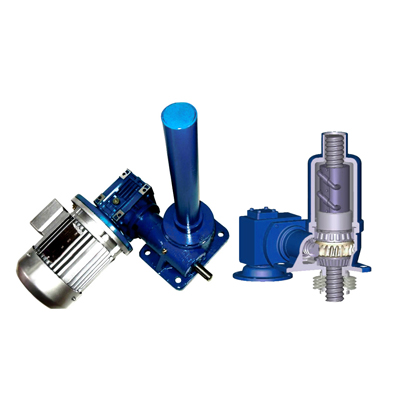 螺旋升降機(jī)的原理為蝸桿驅(qū)動(dòng)蝸輪旋轉(zhuǎn),蝸輪中間為內(nèi)螺紋孔機(jī)構(gòu)(與絲杠相嚙合),再將旋轉(zhuǎn)運(yùn)動(dòng)傳遞至絲杠上下直線運(yùn)動(dòng)。